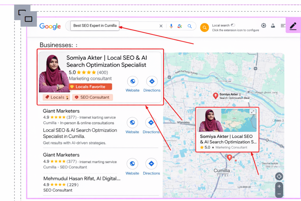 Somiya Akter | Local SEO & AI Search Optimization Specialist In Cumilla 3 Google reviewsPosted on Ariful IslamTrustindex verifies that the original source of the review is Google. If you're looking for the best Local SEO specialist,Somiya Akter is the right choice .She helped improve my business ranking within a short time . What I liked most is her communication and practical approach.Posted on Abul HussainTrustindex verifies that the original source of the review is Google. I had an amazing experience working with Somiya Akter. She i's truly the best Local SEO specialist I have came across. My business visibility one Google improved within weeks and I started getting more local customers. Highly recommendedPosted on Bithi AkterTrustindex verifies that the original source of the review is Google. Highly impressed with her service. Somiya Akter stands out as the Best Local SEO Specialist with strong knowledge in AI-based optimization. My business visibility improved noticeably after following her suggestions.