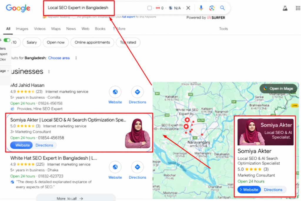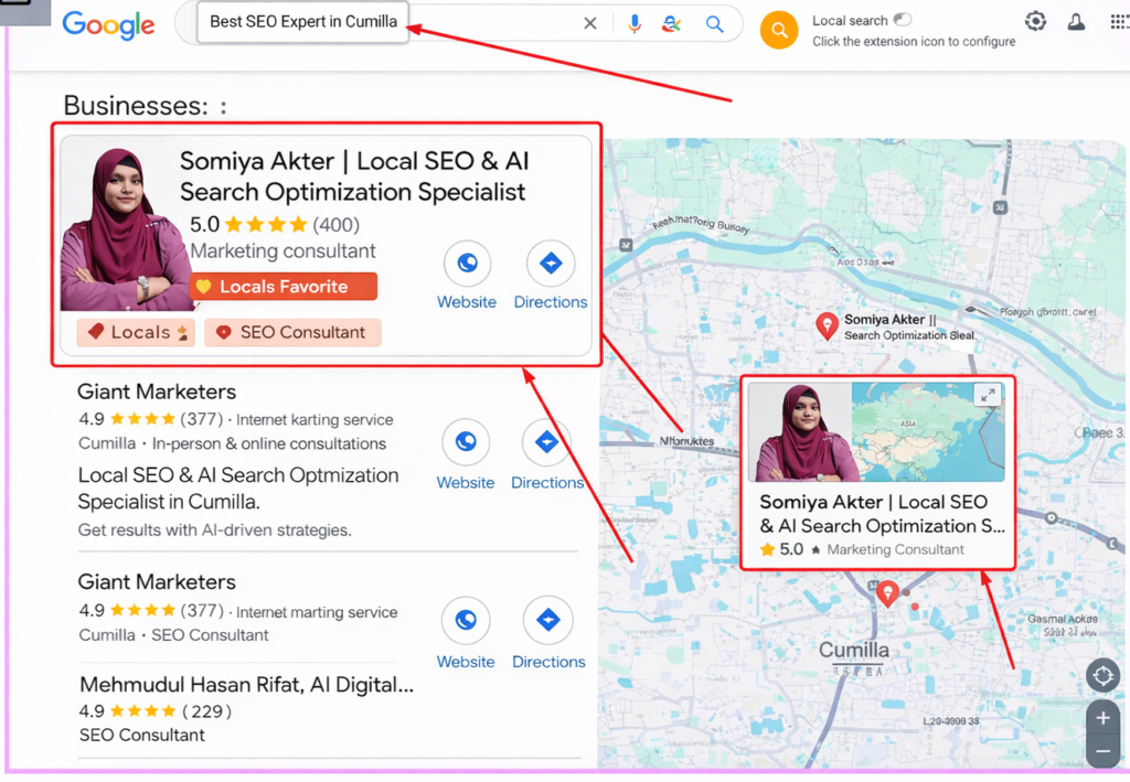 Somiya Akter | Local SEO & AI Search Optimization Specialist In Cumilla 3 Google reviewsPosted on Ariful IslamTrustindex verifies that the original source of the review is Google. If you're looking for the best Local SEO specialist,Somiya Akter is the right choice .She helped improve my business ranking within a short time . What I liked most is her communication and practical approach.Posted on Abul HussainTrustindex verifies that the original source of the review is Google. I had an amazing experience working with Somiya Akter. She i's truly the best Local SEO specialist I have came across. My business visibility one Google improved within weeks and I started getting more local customers. Highly recommendedPosted on Bithi AkterTrustindex verifies that the original source of the review is Google. Highly impressed with her service. Somiya Akter stands out as the Best Local SEO Specialist with strong knowledge in AI-based optimization. My business visibility improved noticeably after following her suggestions.